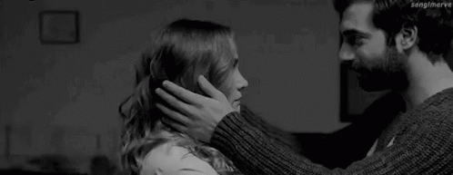 Ayşegül and Poyraz share a tender embrace in a black and white scene, showcasing their deep connection.