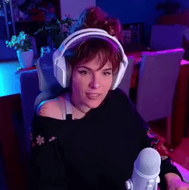B4jeczk4 Bajeczka, the streamerka, wearing headphones and talking into a microphone.