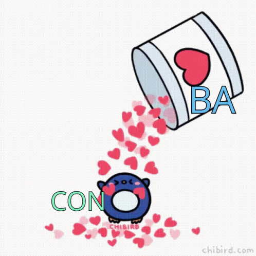 Cartoon of hearts pouring from a bucket labeled 'Ba', symbolizing fatherly love.