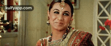 Rani Mukerji from the film Baabul, smiling and laughing in traditional Indian attire.
