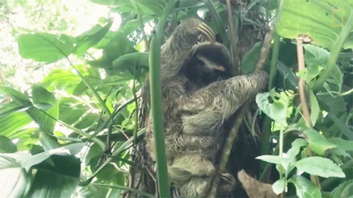 A heartwarming embrace between a baby sloth and its mother in the lush jungle on International Sloth Day.