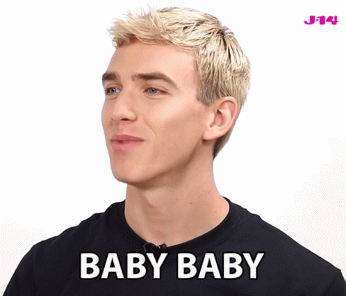 Stephen Sharer, with blonde hair, sings the phrase 'Baby Baby' while wearing a black shirt.