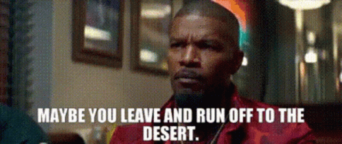 Jamie Foxx as Bats from Baby Driver delivers the line, "Maybe you leave and run off to the desert."