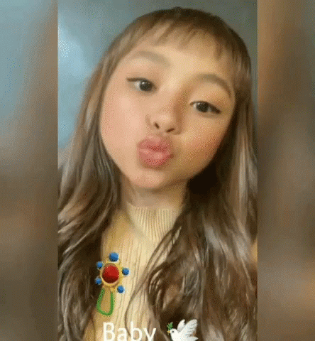 Edward Barber transformed into a baby, blowing a kiss and making a cute pout with a rattle and dove emoji.