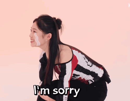 A person from Babydontcry (Bdc) kneeling with white tears, saying 'I'm sorry' and 'I'm so sorry'.
