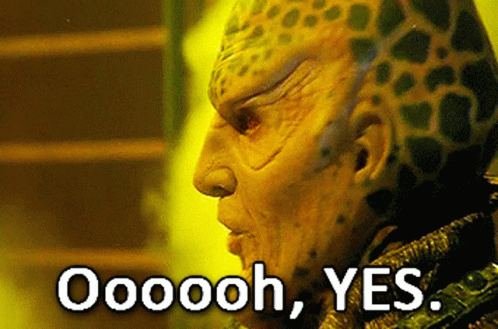 G'Kar from Babylon 5 reacts with an emphatic 'Oooooh, YES.' in a memorable moment.