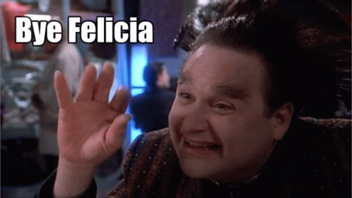a man waving his hand with the words bye felicia written above him