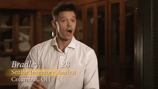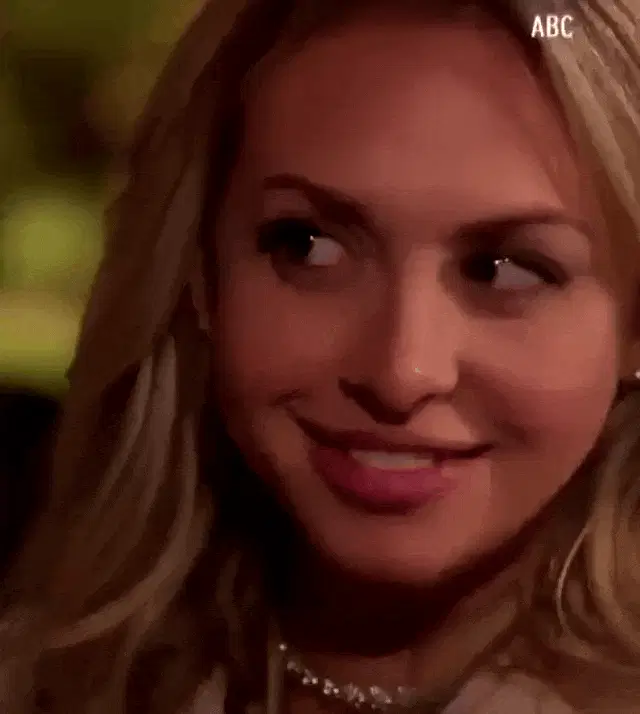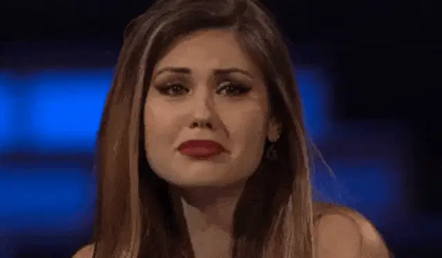 A woman from The Bachelor Greece expresses exasperation with the Greek caption 'Σε Λυπάμαι' (I Pity You).