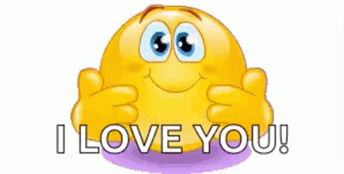 Animated yellow emoji expressing 'I LOVE YOU!' with hearts appearing, showing affection and warmth.