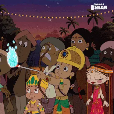 Chutki, from Chhota Bheem, ready for school with her backpack and books.