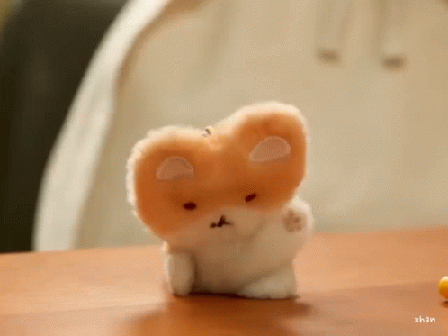 Baekhyun's adorable Teolaegi plushie interacts with strawberry-shaped marshmallows on a wooden table.