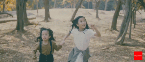 Abbey Ibrahim and her sister run joyfully through a forest, embodying happiness and sisterhood in this music video.