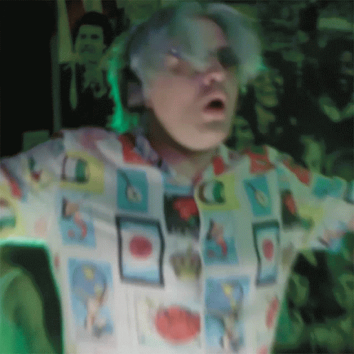 An energetic dancer with light hair and sunglasses leads a lively party, grooving to the music in this Enchufe Tv clip.