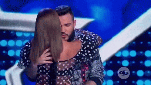 Jesse Uribe and Amparo Grisales share a romantic, flirty dance on stage, performing a 'Bailando Pegadito' routine.