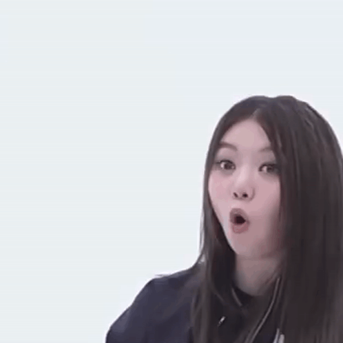 a young woman is making a surprised face with her mouth open .