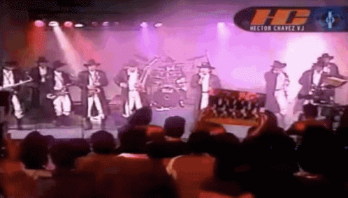 Banda Machos performs live on stage, entertaining a crowd with their energetic music.