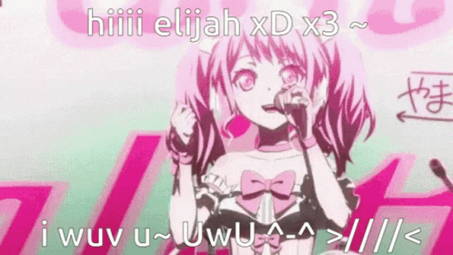 An anime girl from Bandori, possibly named Elijah, sends a cute message with 'I wuv u~ UwU'.