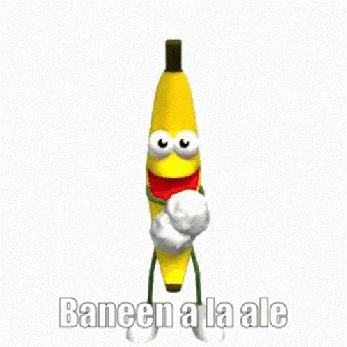 Animated cartoon banana with arms and legs dances to the phrase 'Baneen a la ale'.
