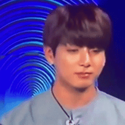 BTS member Jungkook shows a funny, surprised reaction with wide eyes and an open mouth against a blue background.