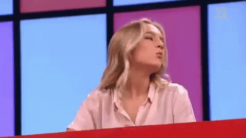 Barbara Mcchile expresses frustration, gesturing animatedly in a pink shirt against a colorful background.