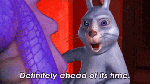 A rabbit character from Barbie Rapunzel says 'Definitely ahead of its time' in this memorable animated clip.