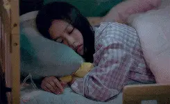 Barbie Rapunzel sleeps peacefully on a purple pillow, her blonde hair braided and a gentle smile on her face.