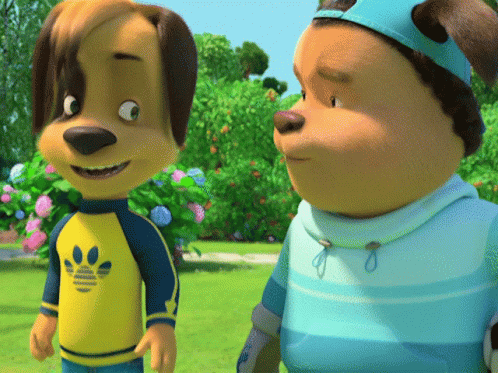 Barboskiny characters enjoy a happy moment outdoors, smiling and laughing in a sunny park.