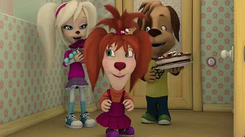 A Barboskiny character attempts to steal a cake, leading to a comical mishap at a party.