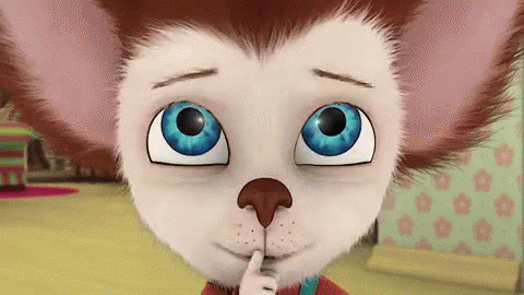 A Barboskiny cartoon character with big blue eyes making a 'shush' gesture, asking for quiet.