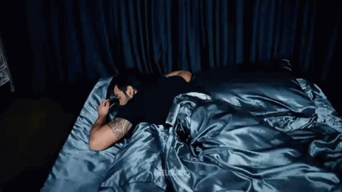Baris Arduç wakes up in a bed with satin sheets, looking around after sleep.