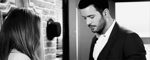 Barış Arduç and Elçin Sangu share an intense moment, looking at each other in a black and white scene.