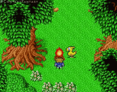 Bartz and a Chocobo in a pixel art scene from Final Fantasy V.