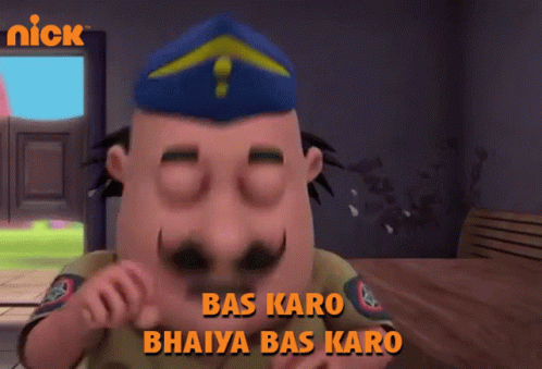 Motu Patlu character, Hawaldar, saying 'Bas Karo Bhaiya Bas Karo' (Please Stop Brother).