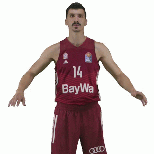 Nihad Djedovic, a basketball player for Bayern Munich, claps and celebrates a good play.