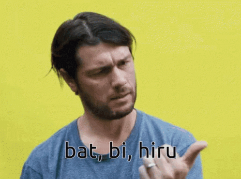 A man gestures while saying 'bat, bi, hiru' (one, two, three) in Basque.