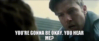 Bruce Wayne (Ben Affleck) from Batman v Superman reassures someone, asking, "You're gonna be okay. You hear me?"