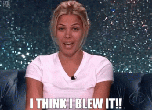 Keesha Smith from BB10 exclaims 'I Think I Blew It!' with a worried expression, reflecting on a mistake.