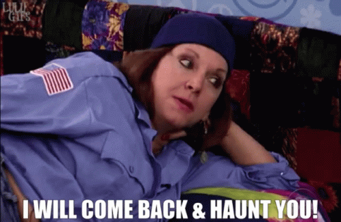 Renny Martyn from Big Brother 10 dramatically declares, 'I WILL COME BACK & HAUNT YOU!' while lounging.