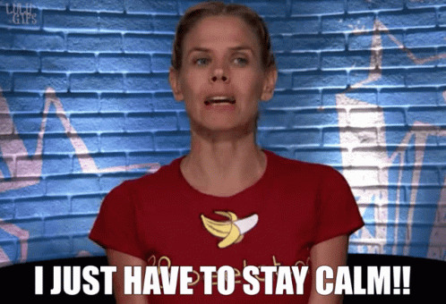 Keesha Smith from Big Brother 22 wearing a red shirt that says 'I JUST HAVE TO STAY CALM!!'