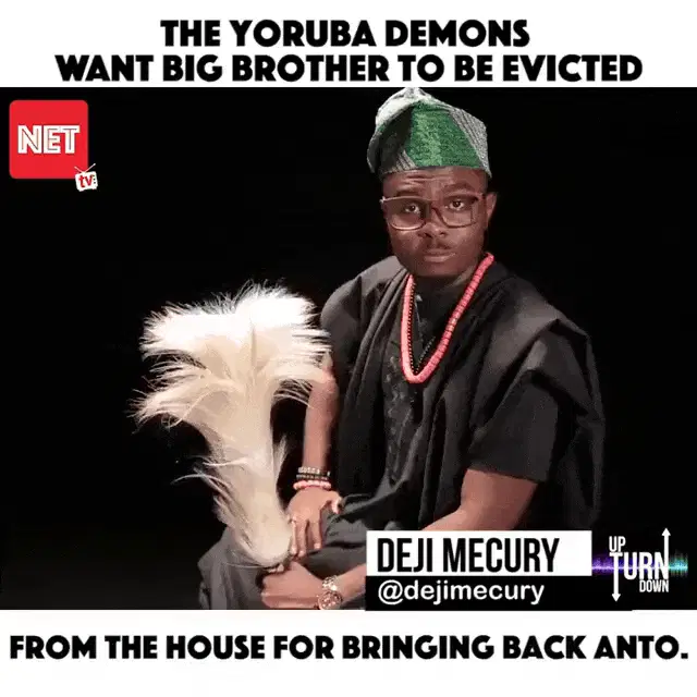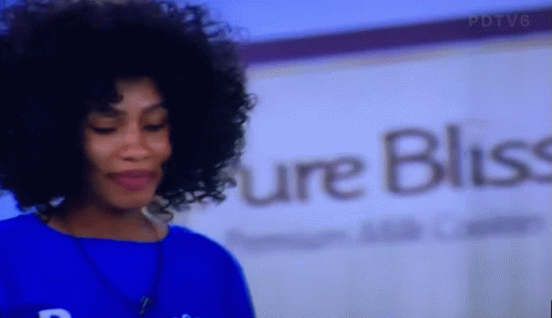 Mercy Eke, a contestant from BBNaija, playfully sticks her tongue out while wearing a blue shirt in front of a 'Pure Bliss' sign.