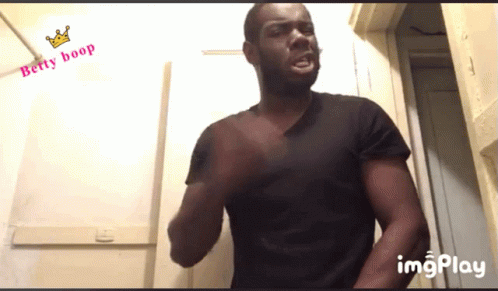 Bddl52, a man in a black shirt, stands with a teasing smirk in front of a door with a 'Betty Boop' graphic.
