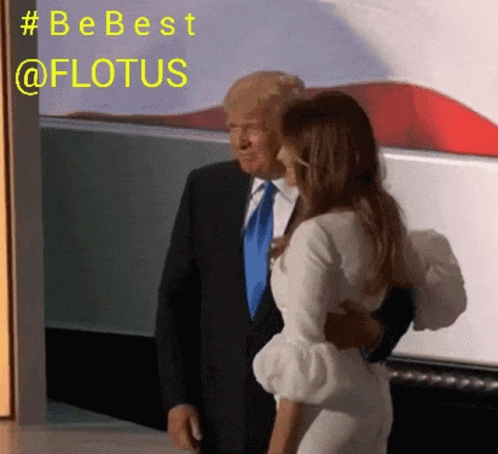 Donald Trump and FLOTUS Melania Trump stand together with the '#BeBest' slogan displayed.