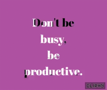 A motivational message on a purple background: 'Don't be busy, be productive.'