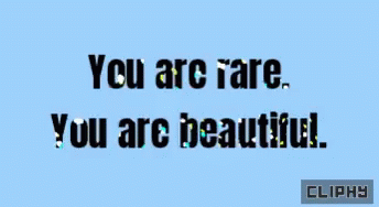 An uplifting message on a light blue background, stating "You are rare. You are beautiful."
