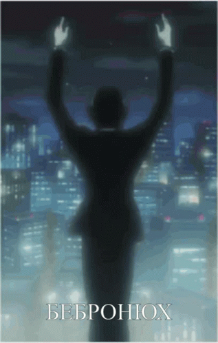 Anime character in a suit with arms raised, city background, featuring the 'Bebronuh' meme text.
