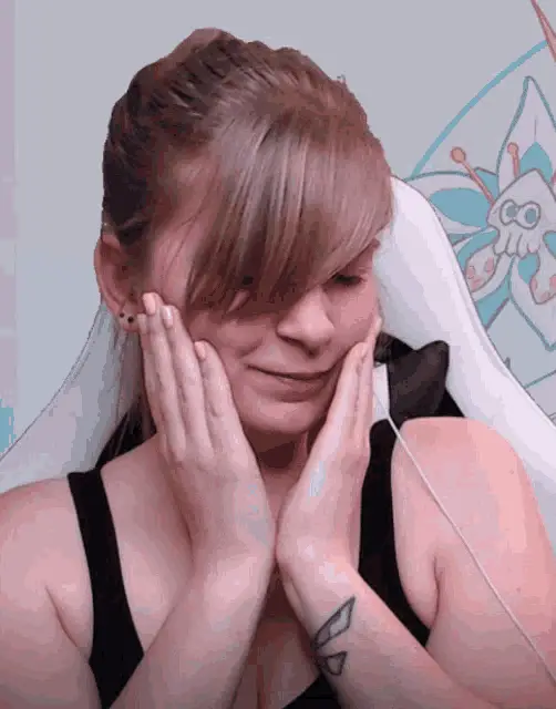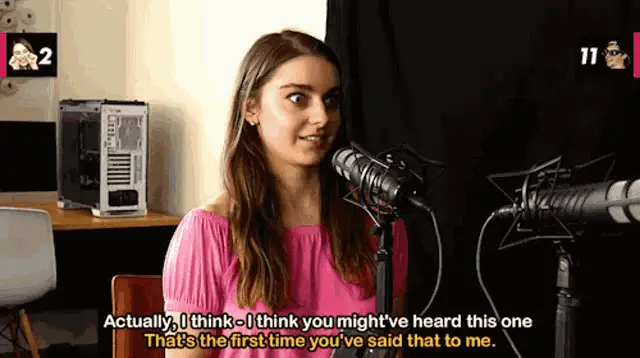 Beemes, a streamer wearing glasses and headphones, makes a 'shhh' gesture by placing her finger to her lips.