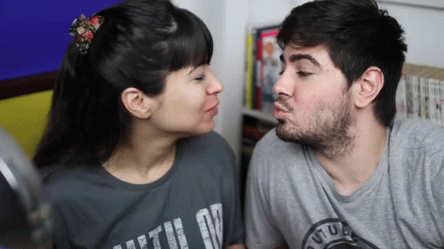 Sandra Landeiro and Sangerine share a sweet kiss, showing affection as a cute couple.