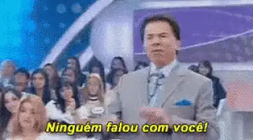 Silvio Santos covers his mouth, possibly giving a 'beijinho', with 'Tagarela Petaca' visible in this vintage clip.