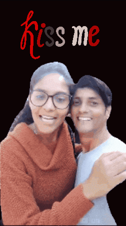 Barbara Reis and Romero Silva share a sweet moment, posing for the camera with 'Kiss Me' text.