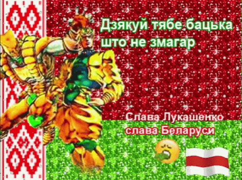 A glittery meme featuring Dio from Jojo's Bizarre Adventure with Belarusian political slogans.